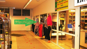 Butik pre obchod alebo služby, toalety spoločné v obchodnej pasáži.